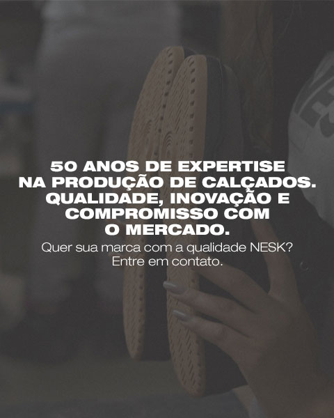 Com estrutura de ponta e processos otimizados, a NESK desenvolve e produz calçados com alto valor agregado, prontos para atender às exigências do varejo em todo o Brasil. O compromisso com a qualidade, a sustentabilidade e os prazos firmam a NESK como parceira estratégica para lojistas e distribuidores.
